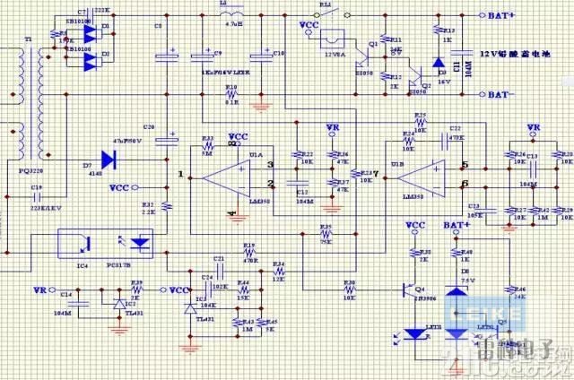 本PCB文件是由上圖原理(沒有繼電器電路)設(shè)計(jì)的12V/4A簡單的三段式充電器。