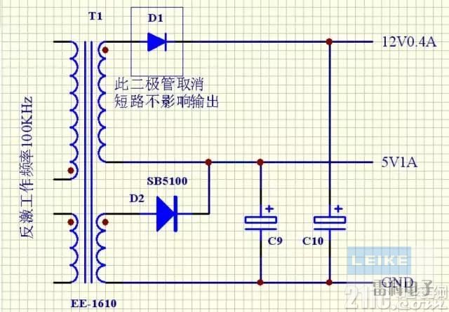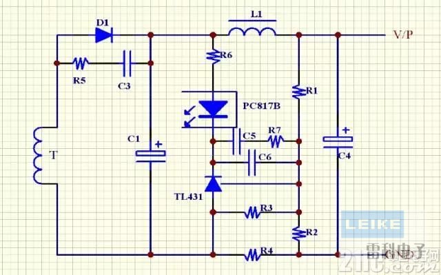 ●在本實(shí)例中,一般我們設(shè)5V為采樣反饋端.如果雙路采樣交叉調(diào)整率可能會(huì)更差,甚至不能單獨(dú)空載和獨(dú)立帶載問題.此方法得以解決這一問題,此方法不太適合兩組電壓相差遙遠(yuǎn)的應(yīng)用.會(huì)多占用變壓器一腳.