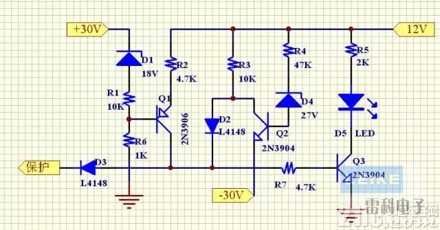 ●Q3是作為保護(hù)的指示燈驅(qū)動(dòng)電路。